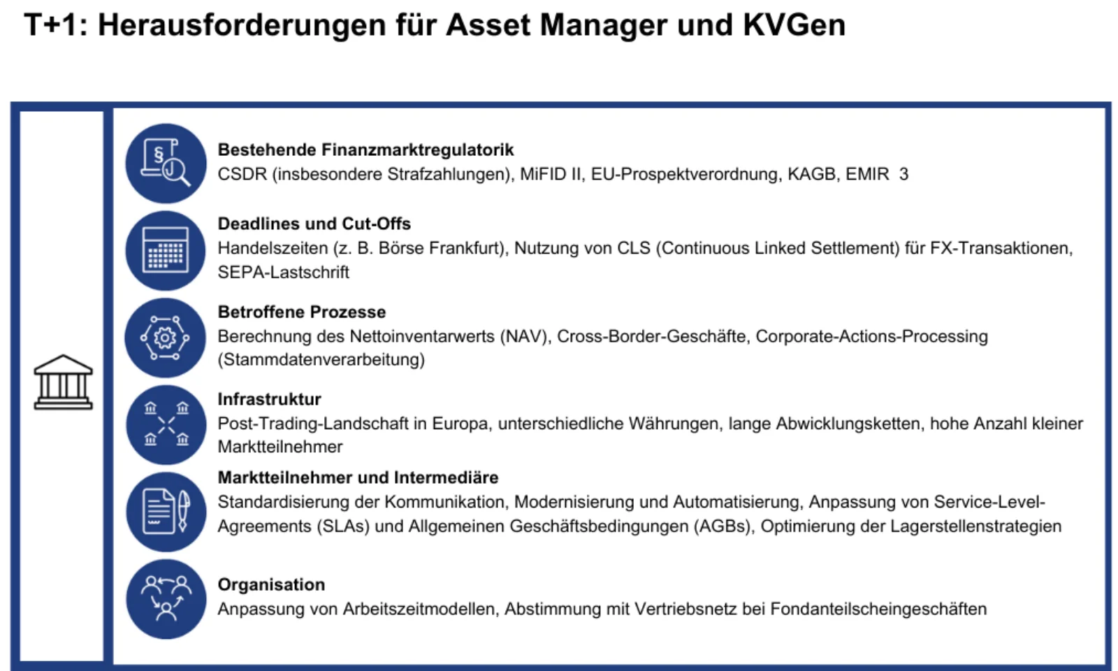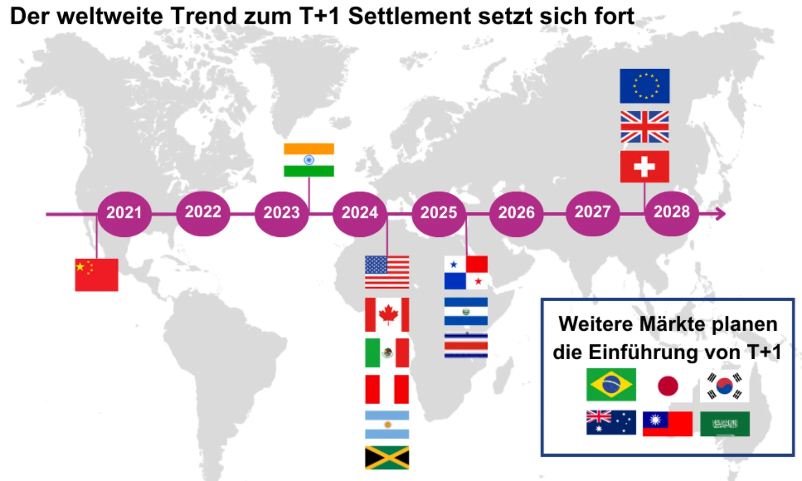 Von regulatorischen Anforderungen bis zur Prozessautomatisierung – die Umstellung verlangt frühzeitige Anpassungen. Dieser Beitrag beleuchtet die Grundlagen von T+1, die globalen Entwicklungen und die Maßnahmen, die Unternehmen ergreifen sollten, um nicht nur mit den Veränderungen Schritt zu halten, sondern daraus Wettbewerbsvorteile zu ziehen.